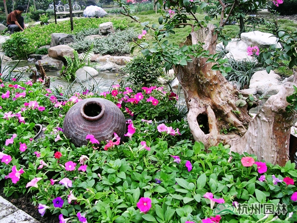 第六屆中國花博會之浙江園,又名花漫錢塘。占地面積1420平方米,呈自然式布局,全園以浙江山水為背景,以母親河錢塘江奔流入海為主線,一灣流水貫穿全園,“錢江源”、“晴空海蜃”兩大景觀交相輝映。園內綠樹盎然,花漫遍地,洋溢著浙江的朝氣與活力,體現了浙江自然山水、人文歷史、經濟社會的和諧。