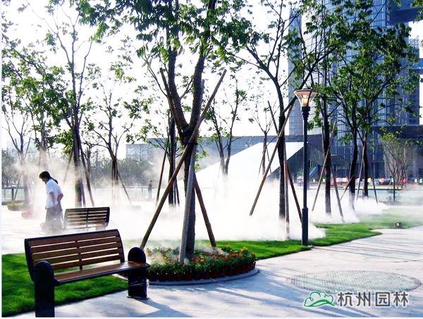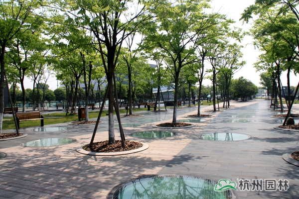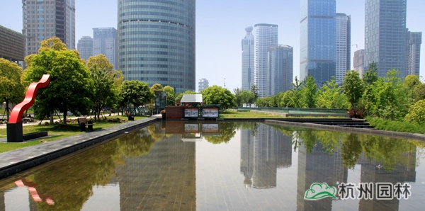 該工程東臨新業路,西至解放東路,北倚杭州市市民中心,工程占地 5.1公頃,內容包括地面花崗巖及木地板鋪裝,臺階花崗巖鋪裝,臺階水池、兩翼水池鋪裝,種植土更換,喬木種植,草皮鋪種等。工程將現代科技和園林藝術完美交融,是杭州走向錢塘江時代的創新力作。