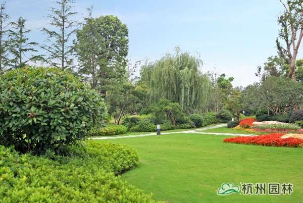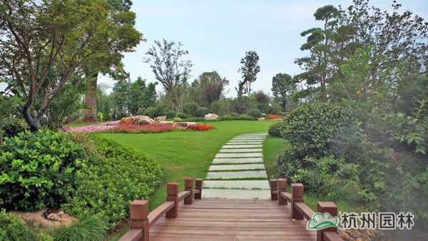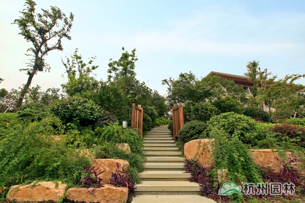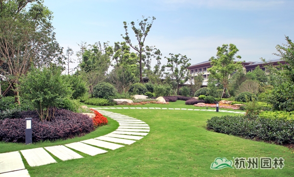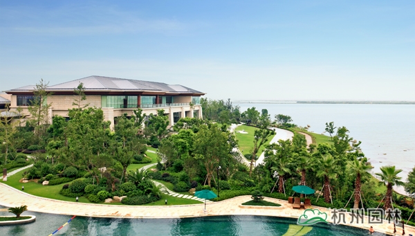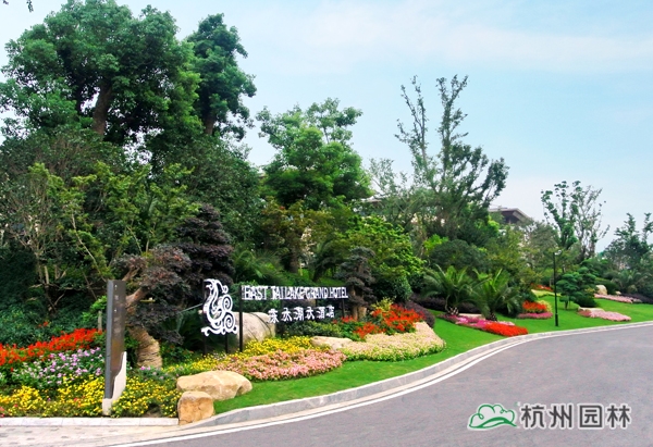 該工程位于江蘇吳江松陵鎮濱湖路三船河大橋附近,內容包括綠化種植、硬質鋪裝、園路施工、景觀小品工程、樁基工程、景觀照明系統等。在植物配置上,將中國園林的自然式手法與英國園林的自然式風格相結合,營造出亦古亦今、中西混搭,整體恢宏大氣、局部婉約精致的高端酒店景觀。該工程榮獲“2014年度中國優秀園林綠化工程大金獎”。