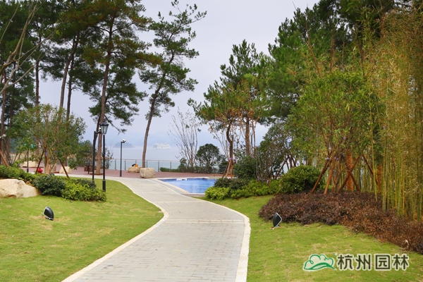 該工程位于浙江省淳安縣千島湖大石坪半島,主要施工內容包括綠化種植、硬質鋪裝、景觀土建、景觀水電安裝等。千島湖以大旅游業(yè)為龍頭的服務經(jīng)濟前景廣闊,該酒店獨具特色的綠化景觀將成為千島湖酒店服務領域的一大亮點。