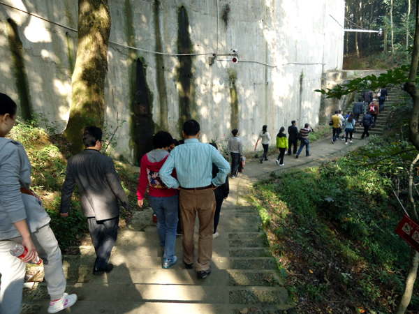 一路上,臺階時高時低,地勢時陡時緩,很快,就有人喊著走不動了,而有人則依然健步如飛……大隊人馬很快分散成了一條長長的隊伍,在蜿蜒的山路中向著高處奮勇攀登!