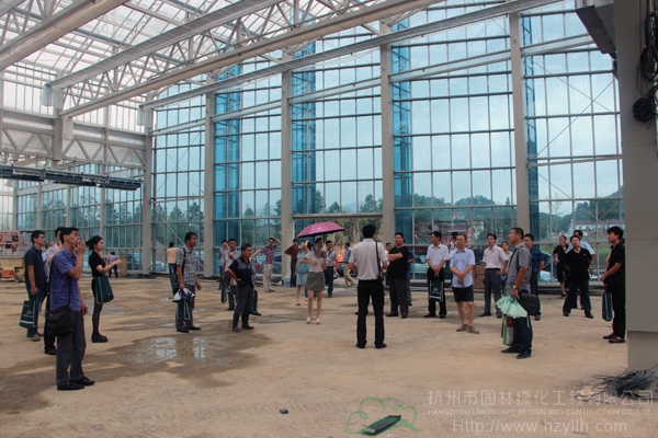 廠商代表參觀正在建設中的青山湖?花園中心玻璃溫室大棚