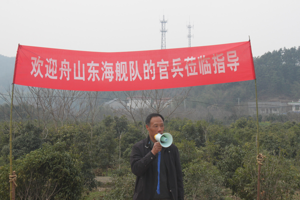 3月31日上午12點(diǎn),舟山東海艦隊(duì)某支隊(duì)官兵們的車輛到達(dá)泉口苗木基地,現(xiàn)場(chǎng)舉行了熱烈的歡迎儀式。儀式由杭州市園林綠化工程有限公司總經(jīng)理張炎良主持,杭州市林水局副局長(zhǎng)楊文鐘代表杭州市政府對(duì)官兵們的到來表示了熱烈的歡迎,并發(fā)表了熱情洋溢的致辭;舟山東海艦隊(duì)某支隊(duì)呂政委代表官兵們致答謝辭,并贈(zèng)送給楊副局長(zhǎng)一個(gè)海軍軍艦?zāi)P停磉_(dá)他們對(duì)杭州市政府送樹行為的感謝。