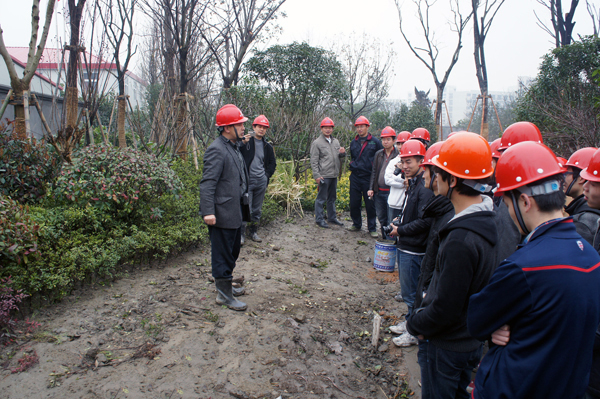 作為被杭州人事局授予的“杭州市大學生企業實訓基地”,公司一直為浙江理工大學、麗水職業技術學院等高校的大學生提供實踐學習的機會。今天的參觀,李總以中國·國際城景觀工程這一高標準的項目為范本,不但向同學們介紹了許多課本上學不到的園林設計知識,而且從另一個方面展現了公司對設計和施工高質量、高規格的要求,可以說是給大家上了一堂生動的園林教學實踐課。