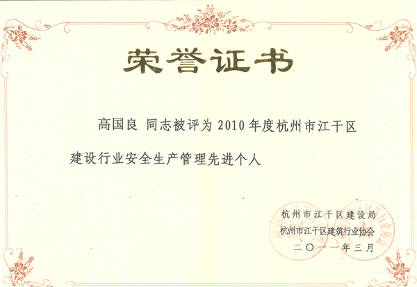 會(huì)議旨在總結(jié)經(jīng)驗(yàn),表彰先進(jìn),現(xiàn)場宣讀了一批在2010年為江干區(qū)經(jīng)濟(jì)發(fā)展做出突出貢獻(xiàn)的建筑企業(yè)和個(gè)人名單,并頒發(fā)了獎(jiǎng)牌和證書。其中,公司被評(píng)為“2010年度杭州市江干區(qū)城市園林綠化優(yōu)秀企業(yè)”,成為上榜的七家企業(yè)之一;公司工程總監(jiān)、市政分公司副總經(jīng)理高國良被評(píng)為“2010年度杭州市江干區(qū)建筑行業(yè)安全生產(chǎn)管理先進(jìn)個(gè)人”。