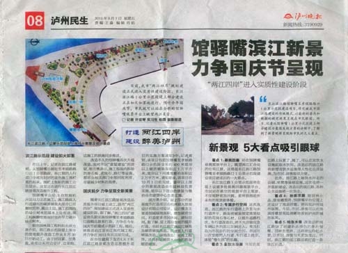 目前,工程改造后的景觀效果突出,有懸挑回廊、瀘州版圖浮雕等多處看點,場地空間內深厚的意境和文化底蘊提升了人們的生活品質,得到了當地市委、市政府的高度認可。