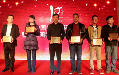 大會揭曉并頒發了“突出貢獻獎”、“貢獻獎”、“最佳合作伙伴獎”、“2013年優秀參展獎”、“2013年產品金獎”等多個獎項,以此表彰一批多年來為中國(蕭山)花木節的成功舉辦做出積極貢獻的個人和單位。其中,杭州市園林綠化工程有限公司榮獲“最佳合作伙伴獎”、“2013年優秀參展獎”,參展的產品“紅寶石”紫薇和“火煉金丹”桂花榮獲“2013年優秀產品獎”,總經理張炎良上臺領取了獎牌。