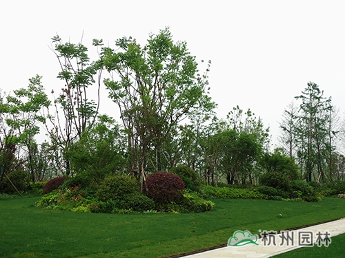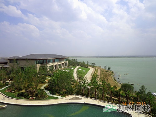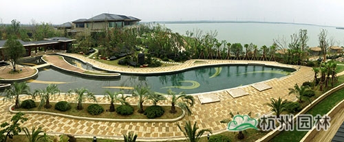 該酒店的景觀工程(一標段)由杭州市園林綠化股份有限公司承建,工程施工面積10萬余平方,施工內容包括綠化種植、硬質鋪裝、園路施工、景觀小品工程、樁基工程、給排水系統工程及景觀照明系統等。作為一個綜合性園林工程,該工程施工內容多,工程量大,工藝相對復雜,對施工技術的要求較高。