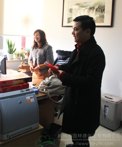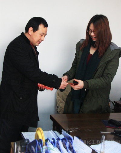 9點之后,董事長吳光洪攜同總經理張炎良、常務副總李壽仁來到各個辦公室向大家拜年,并為每位員工發放了紅包。熱情洋溢的新年問候,真摯溫暖的祝福話語,新年的喜慶氛圍在公司處處傳遞。