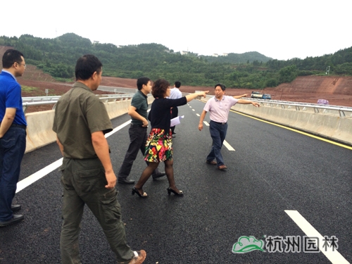 在工程現場,杭州市園林綠化股份有限公司現場技術負責人趙海耀對高速公路西入口的整體布署、設計理念及施工現狀做了詳細匯報。對于工程目前的進展,史燚一行給予了肯定,同時,提出了對工程的要求和看法,希望在雙方的合作及共同努力下,工程能夠順利推進并完美收工。