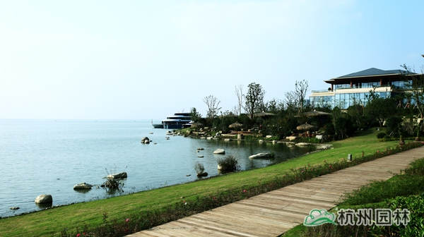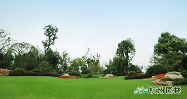 該項(xiàng)目的景觀工程施工總面積21.5萬平方米,分兩個標(biāo)段進(jìn)行。其中,一標(biāo)段施工面積13萬平方米,由杭州市園林綠化股份有限公司承建。施工內(nèi)容包括:綠化種植、土建施工、景觀小品、水景、景觀建筑、給排水系統(tǒng)及景觀照明系統(tǒng)等工程。自2012年6月開工,至2013年5月竣工,歷時近一年。