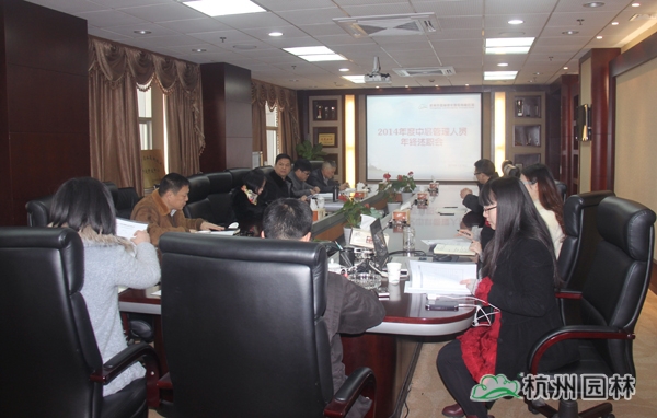 1月19日,杭州市園林綠化股份有限公司中層個人述職報告會在八樓會議室舉行。由總裁張炎良等6位公司高層管理人員組成的評審團,對20多位中層管理人員的領導能力、責任感與信譽度、溝通合作、學習創新四個維度作出評審。