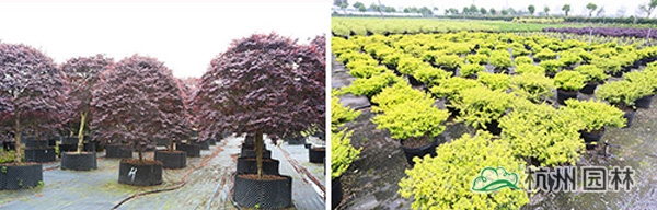 海寧俄樂岡苗木繁育技術有限公司是外商獨資公司,由美國俄勒岡歷史最悠久的幾家苗圃和投資商共同創建。基地的苗木引種自美國俄勒岡,目前有160多個品種,主打彩葉樹種,由美國專家團隊按照嚴格的美國標準精心管理和培育。走進苗圃,清一色的容器苗整齊排列,同一個品種的苗木規格基本相同,整個苗圃顯得很干凈,與國內許多以地栽苗為主的苗圃有很大區別。由于很多苗木還處于小苗培育階段,看不出明顯的景觀效果,但從基地負責人的講解和基地現場的建設情況,卻可以感受到美國人對產品培育的高標準和嚴要求。