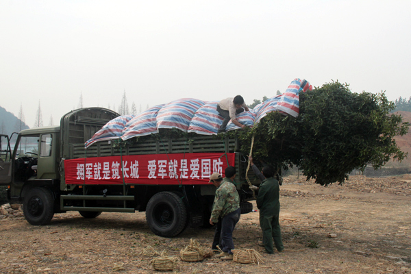 為給官兵營建綠色的生活環境,杭州市政府從杭州市園林綠化工程有限公司位于臨安泉口的苗木基地選購了一批桂花樹送給駐舟山部隊。據悉,此次選購的桂花為蓬徑1.8米至3.5米的大苗,品種有四季桂、硬葉丹桂、波葉金桂等。同時,該公司還派出了專業技術人員前往舟山指導種植工作。