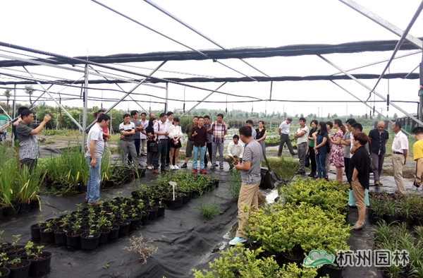 下午,杭州市園林綠化股份有限公司研發(fā)中心技術(shù)員劉華紅帶領(lǐng)大家來(lái)到畫(huà)境?徑山生產(chǎn)中心進(jìn)行實(shí)地參觀。結(jié)合研發(fā)中心開(kāi)展的一個(gè)除草劑試驗(yàn),劉華紅向大家介紹了試驗(yàn)的設(shè)計(jì)思路、處理設(shè)置,展示了拔綠(Barricade)、莠去津(Atrazine)等4種除草劑不同濃度處理的除草效果,初步指出正常用量的拔綠對(duì)多種庭院植物容器苗的除草效果較好。