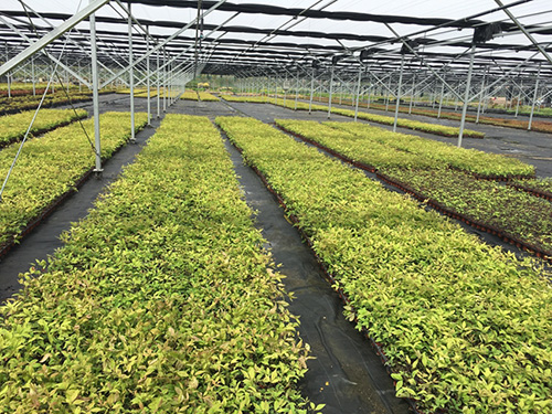 第二站來到了副會長單位——杭州市園林綠化股份有限公司的徑山容器苗基地。黃民強總經理帶領大家參觀了火焰南天竹、木香、八仙花、迎春花、意大利絡石等容器苗,其標準化程度較高,植物形態多樣,能滿足市場的不同需求。另外,基地現場管理非常有序高效,員工們有條不紊地進行著植物的移栽換盆、容器苗的除草養護工作,反映出一家作為園林綠化行業領軍企業不俗的實力和品牌形象。