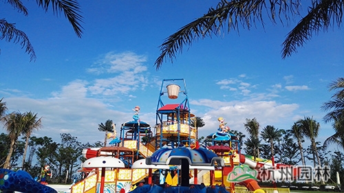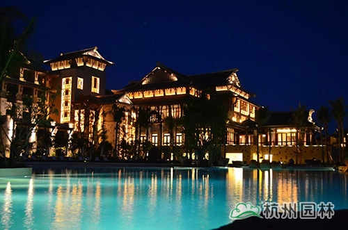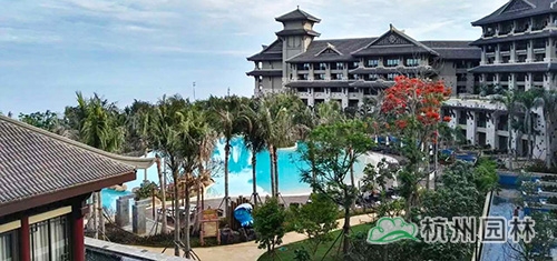 工程景觀面積約14萬平方米,施工范圍包括酒店西面軟、硬景工程,即沙灘泳池區、中軸景觀、南面花園區、別墅區景觀、客房宅間景觀、水上樂園、沖浪池、兒童樂園、木棧道景觀、景觀燈具和景觀小品等。