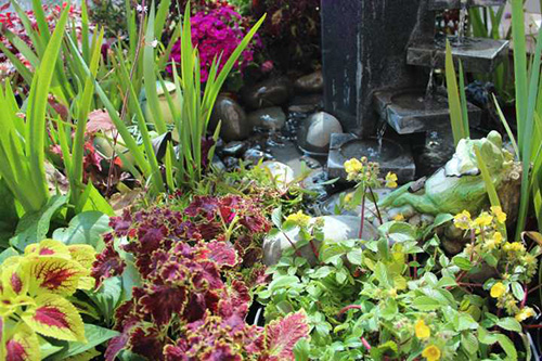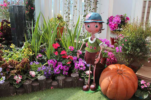 鵝卵石使溪水流淌更趨自然,美麗的鐵藝姑娘在花園中勞作。仔細看,旁邊還有青蛙王子樂隊的婉轉音樂。這些小細節,增加了花境的趣味性。