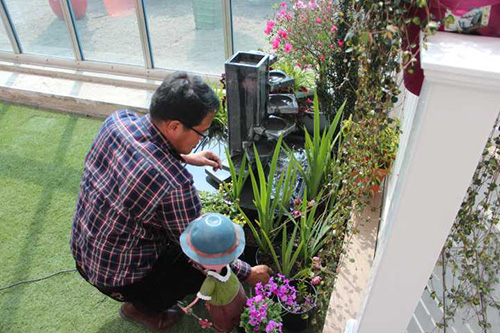 另外,陽臺、露臺、庭院景觀往往依墻體、欄桿而建,故可依托這些構筑物懸掛吊蘭、常春藤、扶芳藤等垂吊類植物,還可根據自己的喜好擺放多肉盆栽、組合盆栽,甚至是盆景等。