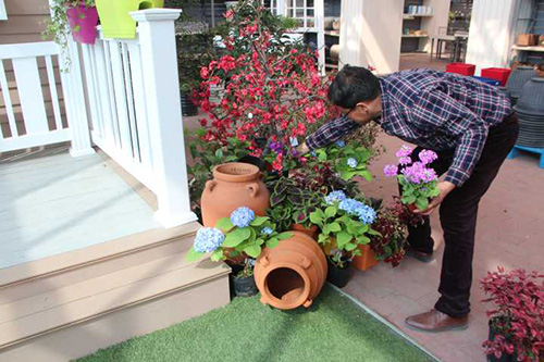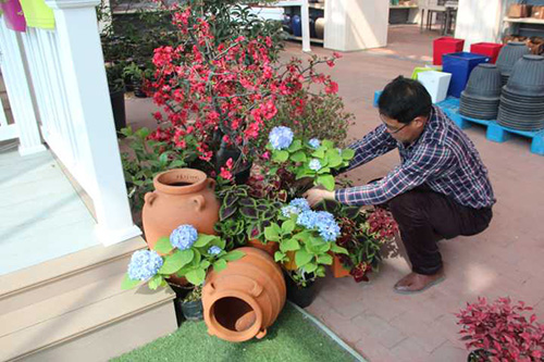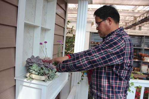 在園藝中心選購打造一米花園所需的園林小品、植物材料及其他輔材。