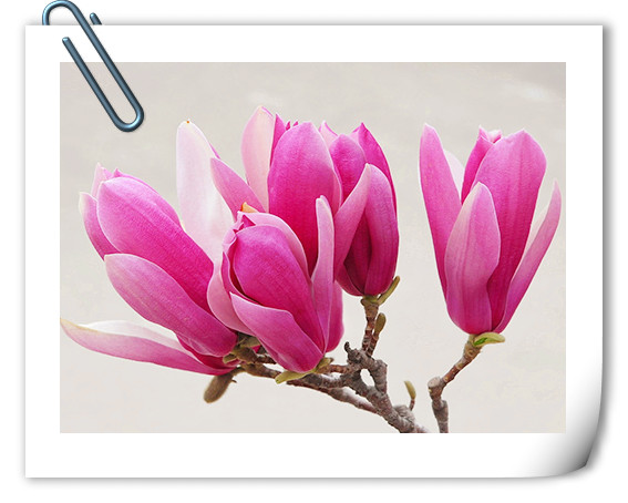 不同顏色的玉蘭中,開得最早的,當數白玉蘭,那純正的白色花朵,纖塵不染,清雅秀麗中有著瓷器的溫潤質感,仿佛一件件潔白的工藝品,很想將它捧在手心,慢慢品味它的精致與美麗。紫色的玉蘭花,則有著淡淡的華貴氣質,那含苞欲放的花朵,酷似一枝枝飽蘸紫色墨水的毛筆,揮灑自如間,描繪出獨屬于春天的明艷風情。黃色的玉蘭花,呈現出淡淡的鵝黃色,柔柔的,嫩嫩的,帶著清新寧靜的氣息,有著超凡脫俗的美。不同顏色的玉蘭花有著不同的美麗,但每一種都那么迷人,充滿靈動的氣息。