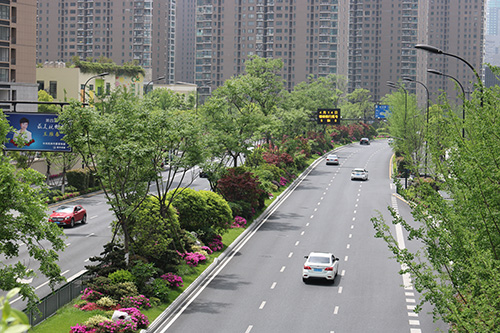項(xiàng)目南起新業(yè)路,北至?xí)一ㄢ致?,全長約1750米,是集綠化、美化、文化等為一體的景觀大道,四季特色分明。春有日本早櫻、垂絲海棠等花滿枝頭;秋有銀杏、紅楓色彩明艷,更有桂花一路飄香;夏、冬時(shí)節(jié)風(fēng)景又有不同。豐富的植物配置、色彩鮮艷的草花、文化氣息濃郁的小品……使得這條道路開闊大氣,充滿生機(jī)。