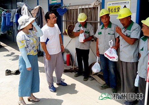 7月20日至28日,杭州市園林綠化股份有限公司的夏季高溫防暑慰問工作也陸續(xù)進(jìn)行,工會領(lǐng)導(dǎo)和各有關(guān)部門負(fù)責(zé)人帶著防暑降溫物品,奔赴各大在建項(xiàng)目工地,為一線施工人員帶去全體員工的關(guān)心和慰問。