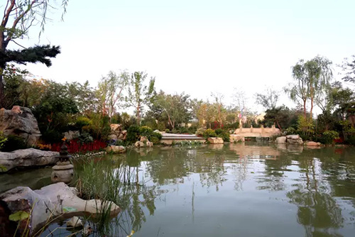“浙江園以‘浙?鄉?綢’為設計主題,采用傳統浙江園林造景手法,以寫意的自然山水,展現浙江獨特的水網密布的地理地貌、小橋流水的江南韻味以及水鄉的蠶、茶文化,詮釋‘夢回江南、絲路通商’的概念,力求打造‘良渚源、蠶茶鄉、古韻風、新思路’的歷史情境,巧妙植入園林新技術、新工藝、新品種,展示‘越溪浣紗、陌上錦霞、古道尋遺、煙氣汀州、絲路新語’等現代浙江園林景觀新風貌。”施工現場負責人方禮銀將“浙江園”的設計理念娓娓道來。