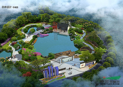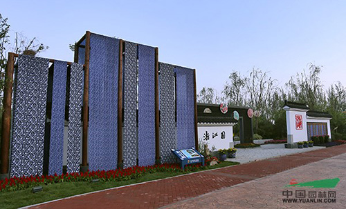 “浙江園”以“浙?鄉?綢”為設計主題,采用傳統浙江園林的造景手法,以寫意的自然山水展現浙江獨特的水網密布的地理地貌、小橋流水的江南韻味以及水鄉的蠶、茶文化,詮釋“夢回江南、絲路通商”的概念,力求打造“良渚源、蠶茶鄉、古韻風、新思路”的歷史情境,展示“越溪浣紗、陌上錦霞、古道尋遺、煙氣汀州、絲路新語”等現代浙江園林景觀新風貌。