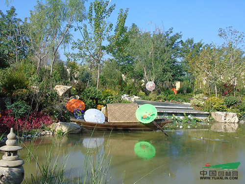 因風沙、潮濕、鹽堿度、溫度、降水、冰凍對建筑材料的損傷,則需要根據當地的氣候和地理環境選擇適宜的園藝材料,特別是建筑方面,而當地的資料便是最好的選擇。浙江展園一改南方資材,選用了寧夏當地的柳桉、筒瓦等,青磚、烏蓬船則直接從南方運來,南北方園藝資料的有機互補,營造出一種融進當地特色的浙江園林景觀風貌。