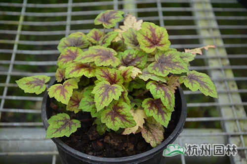 礬根葉形也變化多樣,基部心形或楔形,掌狀淺裂至深裂,邊緣波狀,淺根系,葉基生,花期一般為4~10月,花很小,呈鐘狀,兩邊對稱。幼苗長勢緩慢,成苗后生長旺盛。綠期長,能夠在-15℃以上的溫度下生長。具有喜半蔭、耐全光、耐旱性和耐寒性強等生理特點。適宜富含腐殖質的土壤。喜中性偏酸,適宜的PH值為5.8~6.2,能夠在傾斜地方生長。冬季不落葉,枝葉生長稠密,株型圓整,覆蓋性強,花和葉都比較漂亮。