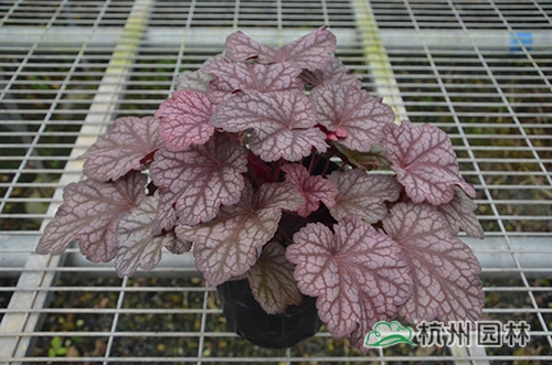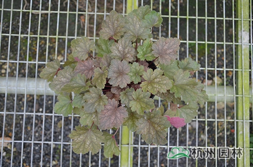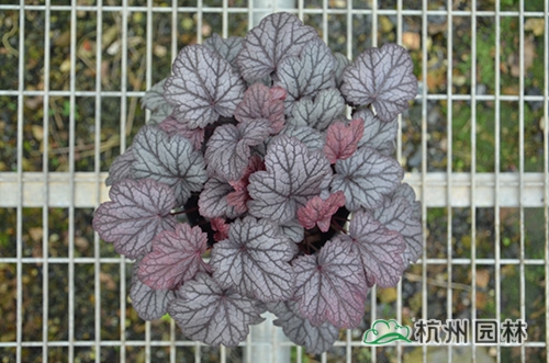 礬根Heuchera micrantha,虎耳草科礬根屬,多年生耐寒草本花卉,原產于美國中部,是少有的彩葉陰生地被植物,被廣泛應用于美國園林景觀中。近年來,在國內,作為新優地被植物,礬根因其美麗的葉色和獨特的葉形,良好的觀賞性和景觀效果,成為熱門園林植物之一,有著廣闊的應用前景。