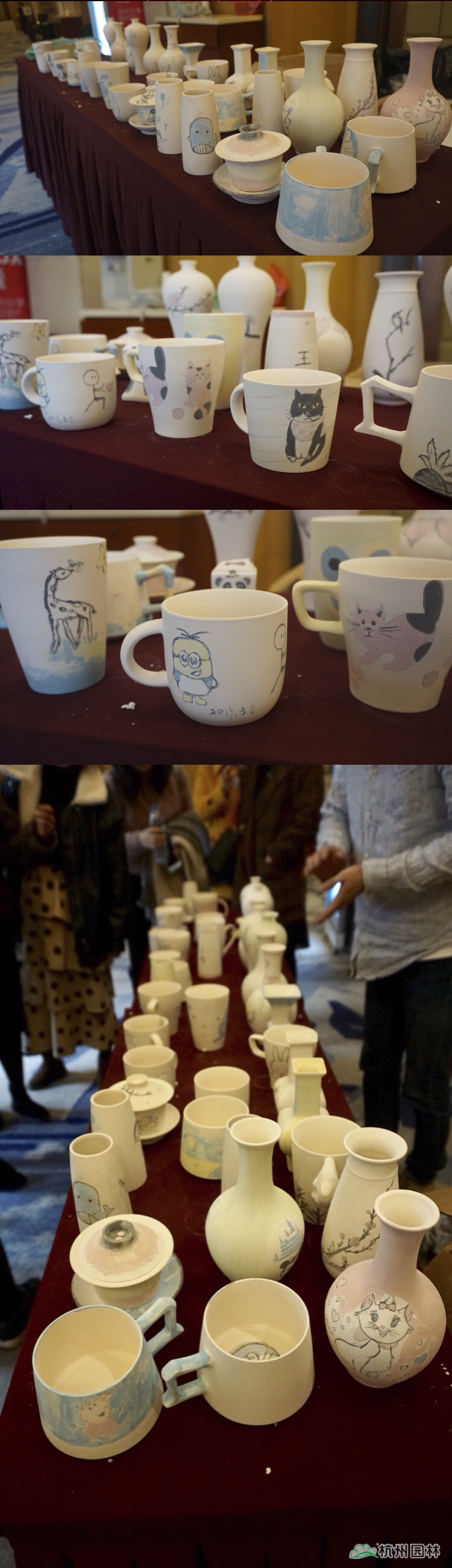 說(shuō)起陶藝,大家想到的肯定是雙手扶著轉(zhuǎn)盤上的陶泥,捏出形態(tài)各異作品的場(chǎng)景,但今天我們玩點(diǎn)不一樣的。素胚固然清爽,但少了色彩的點(diǎn)綴,總會(huì)覺得好像黑白電影略顯枯燥。是的,這次我們將畫紙搬到了這些瓶瓶罐罐之上。認(rèn)真的女人真的很美,一幅幅生動(dòng)的畫作在短短的一個(gè)多小時(shí)的時(shí)間里展現(xiàn)在了大家的眼前。有山水,有動(dòng)物,有卡通畫,有說(shuō)要送給家中寶寶的,也有說(shuō)這代表了我們一家三口的。拿起畫筆的小仙女們,不再是那些個(gè)日常辦公室里的形象了,她們?cè)诮裉欤炎约旱目蓯邸L(fēng)趣、溫婉、隨性等等面貌展現(xiàn)得淋漓盡致。