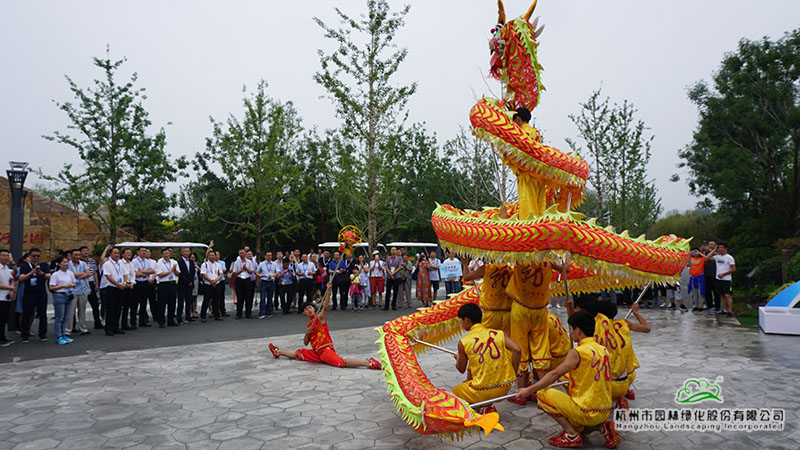 在寧波城市主題日活動現(xiàn)場還進行了奉化布龍非遺文化表演。在浙江園主入口,只見龍在飛騰,人在翻舞,龍身迎風,呼呼有聲,恰似蛟龍出海,帶來翻江倒海的磅礴氣勢,令人屏息凝神,目不暇接。這些舞龍的少年來自于奉化高級中學舞龍隊,他們曾在2010年浙江省第二屆鄉(xiāng)村舞龍大賽中獲得金獎。