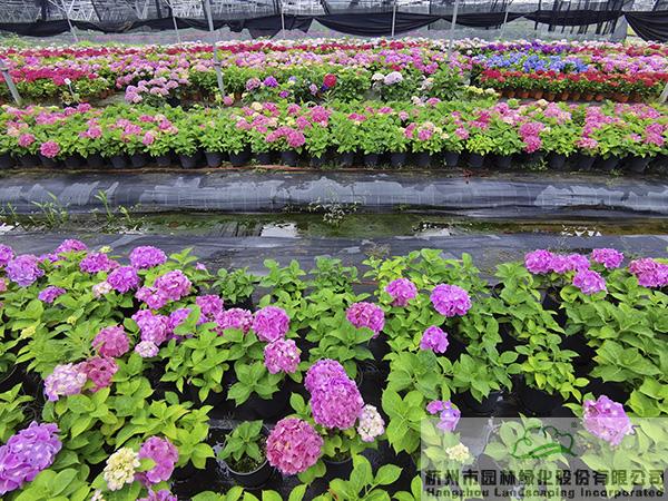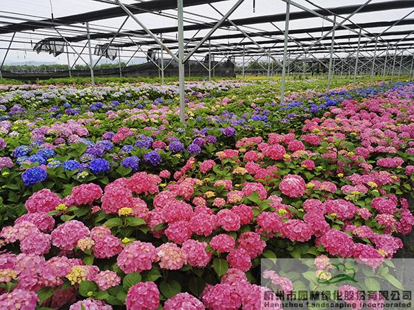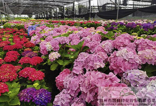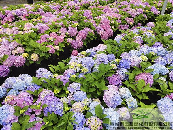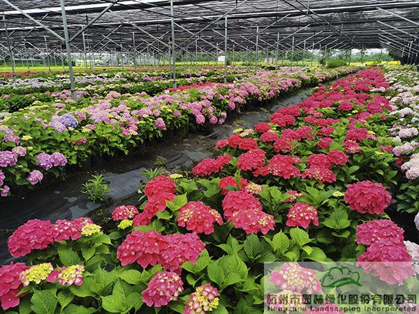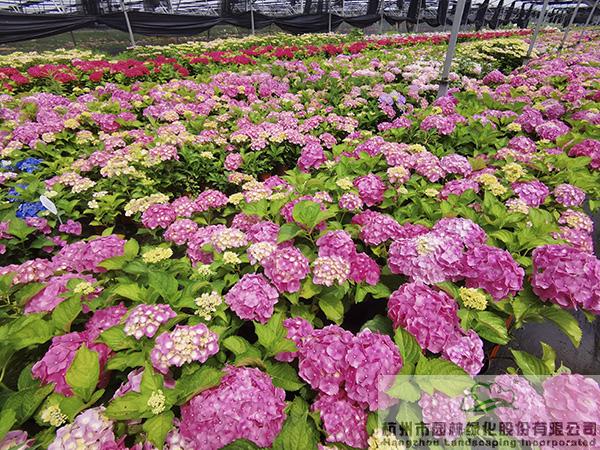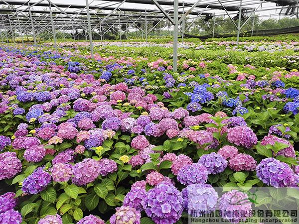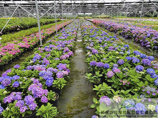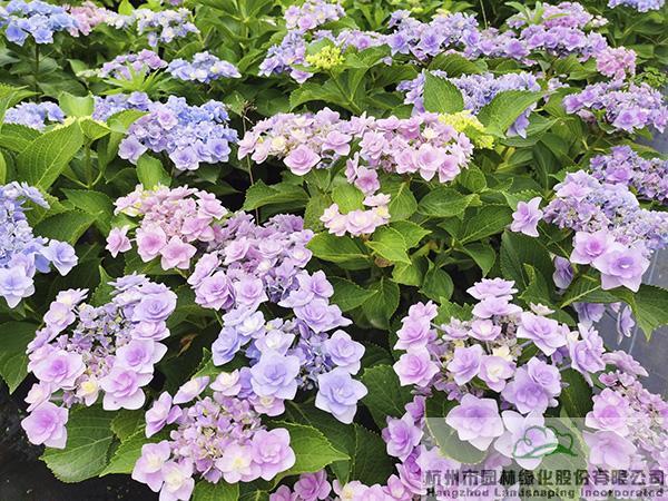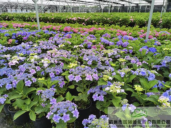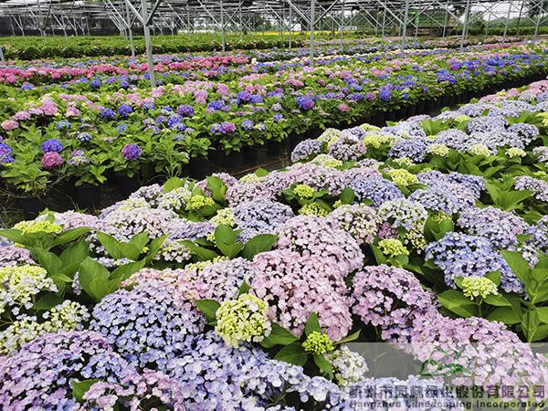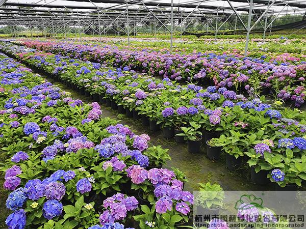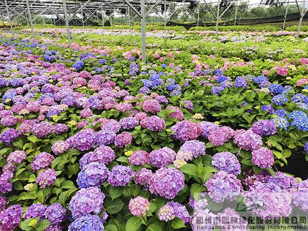 據(jù)悉,在畫境種業(yè)徑山基地,共有七八十個繡球品種,規(guī)格從1加侖到5加侖,能夠滿足家庭園藝和工程用苗的多種需求。通過近幾年的生產(chǎn)和繁育,徑山基地不斷篩選優(yōu)良的繡球品種,目前,基地里的這些品種表現(xiàn)都比較好,比如紅色系的搖擺樂、漢堡、花神,花色紅艷,花朵碩大,在一眾繡球中表現(xiàn)非常搶眼;花色豐富多變、宛如一顆顆璀璨寶石的藍(lán)寶石和藍(lán)色媽媽;花朵宛如蝴蝶翩躚、花色充滿夢幻感的佳澄;花朵密集、猶如一大捧五顏六色爆米花的愛莎;開花早、花期長、花色漸變的藍(lán)色海洋;花開時,宛如一只只白色小鳥在枝頭紛飛的泉鳥;花團錦簇、花期超長的無盡夏……可以說,每一種繡球的花色、花形都各不相同,極具特色,充滿了夏日的浪漫情懷。