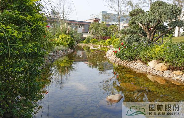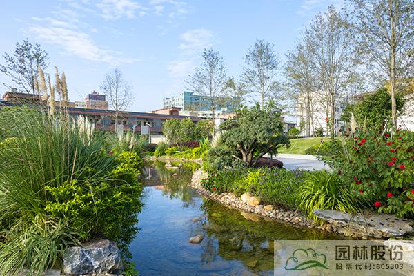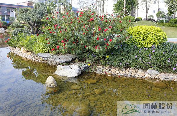 融入海綿城市理念打造的旱溪景觀,用鵝卵石鋪裝,點綴景石,岸邊種植造型水蠟、楊梅、蘆葦、蒲草、三角梅、黃金葉、黃金榕、朱蕉、扶桑花、變?nèi)~木、紅千層等當?shù)剜l(xiāng)土植物,打造生態(tài)環(huán)保的地域特色景觀風貌。