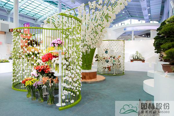 走進館內,各種浙江特色新優園林園藝植物產品、花藝作品、盆景作品等,讓人忍不住駐足停留。最引人注目的,則是以一朵朵白色的蝴蝶蘭花朵與仿竹構筑物營造的立體景觀,結合蒼翠欲滴的竹林背景和浙派山水盆景,營造出綠意盎然、生機無限的風景畫卷。寓意浙江是“綠水青山就是金山銀山”理論的發源地,表現浙江始終踐行“綠水青山就是金山銀山”的理念、大力推進生態文明建設取得的巨大成就。