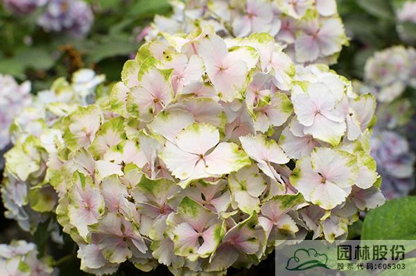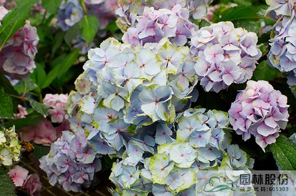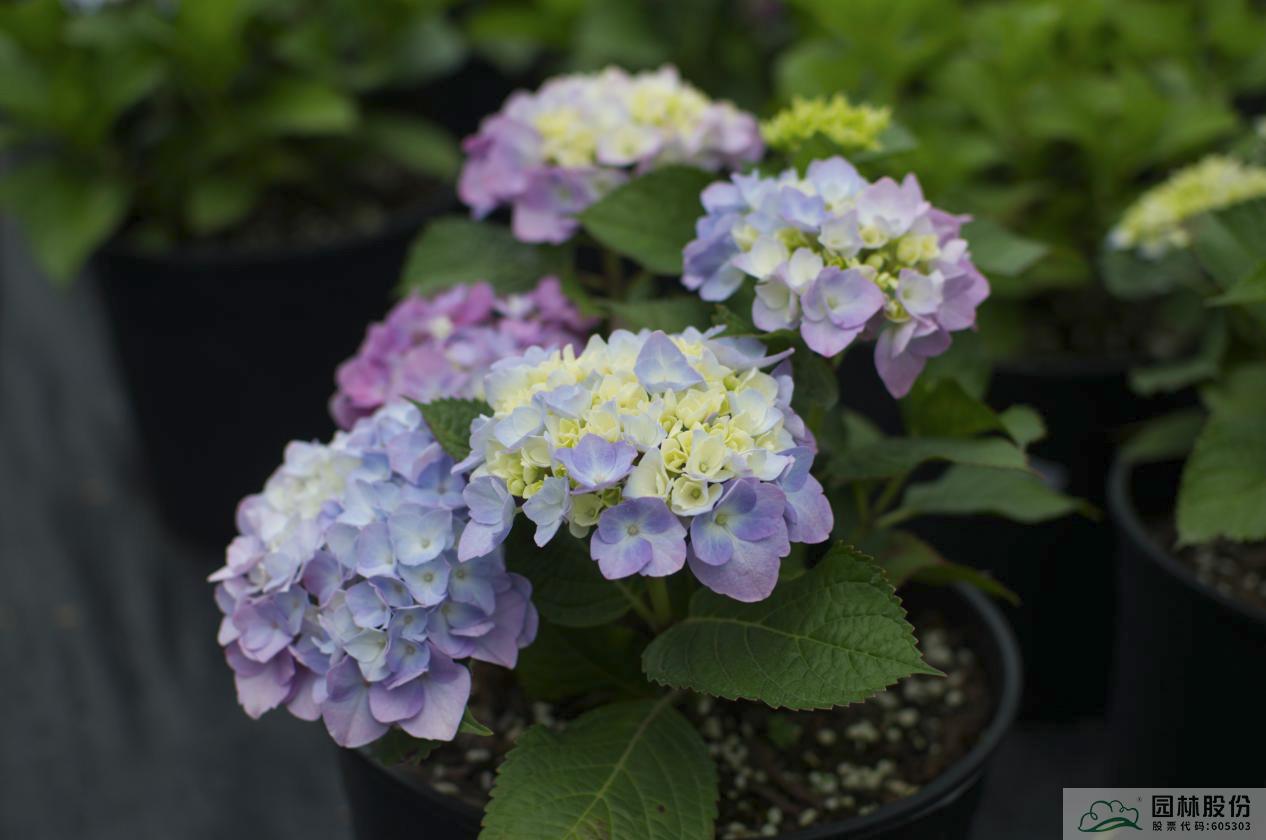 繡球品種繁多,花色豐富,在杭州市園林綠化股份有限公司的研發基地里,企業自主培育的青山系列繡球,已有20個品種。該系列繡球品種具有植物強健、直立性好、抗逆性強、花期早、開花時間長、花色艷麗豐富等特性。