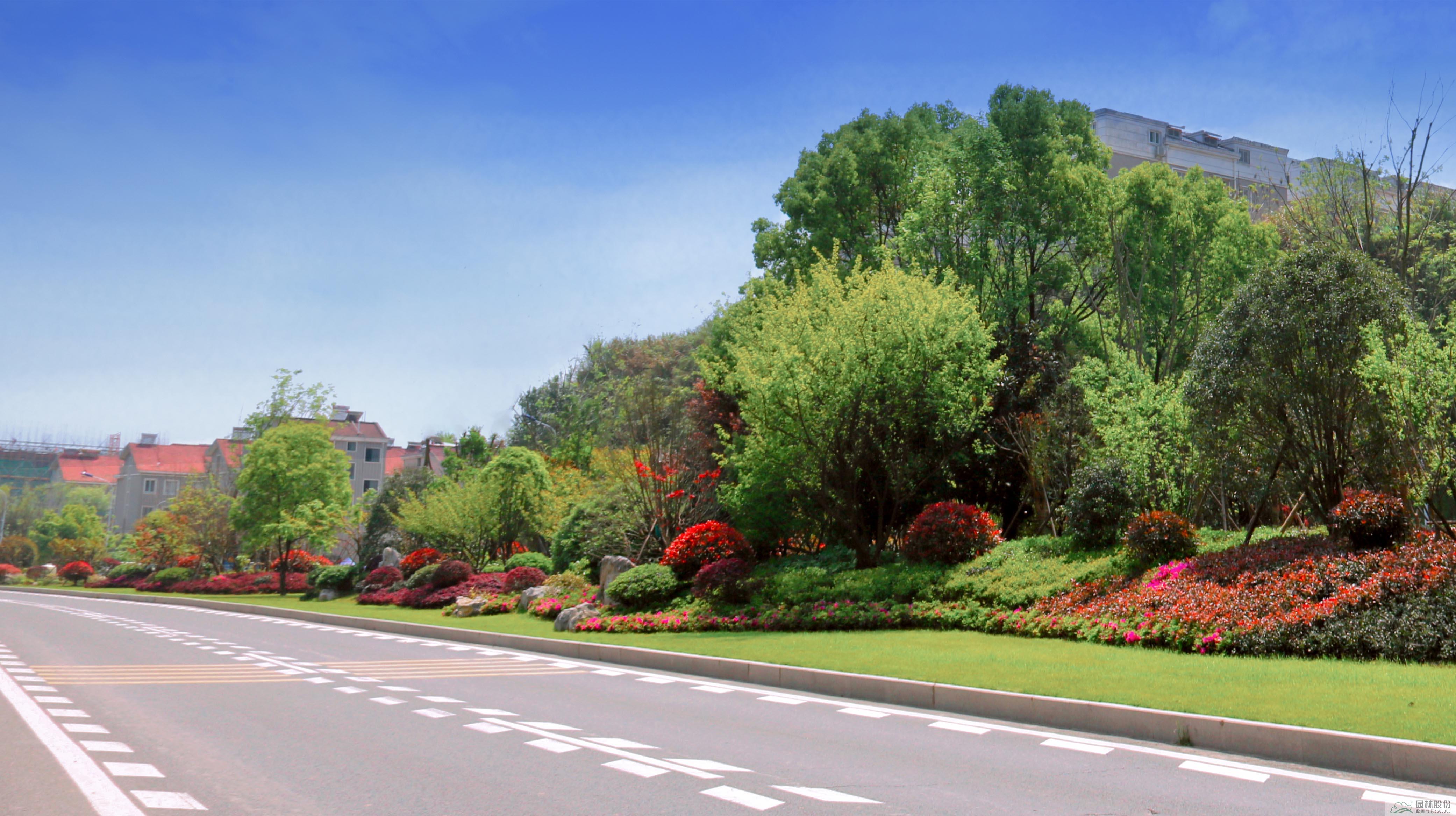 而在建德市美麗城鄉精品示范道路打造工程,公司在景觀營造上以優化植物配置為主,強調生態綠化;四季有花,四季常青,突出季相效果;立體綠化層次分明,突出層次效果。工程設計運用幾何構圖形式,形成簡潔、明快、具有當地特色的道路景觀,將道路綠地與城市綠地建設成為自然融入的有機整體,真正地形成“路在綠中、車在綠中、人在綠中”的生態效果,將其打造成一條建德境內獨有的文化綠廊。
