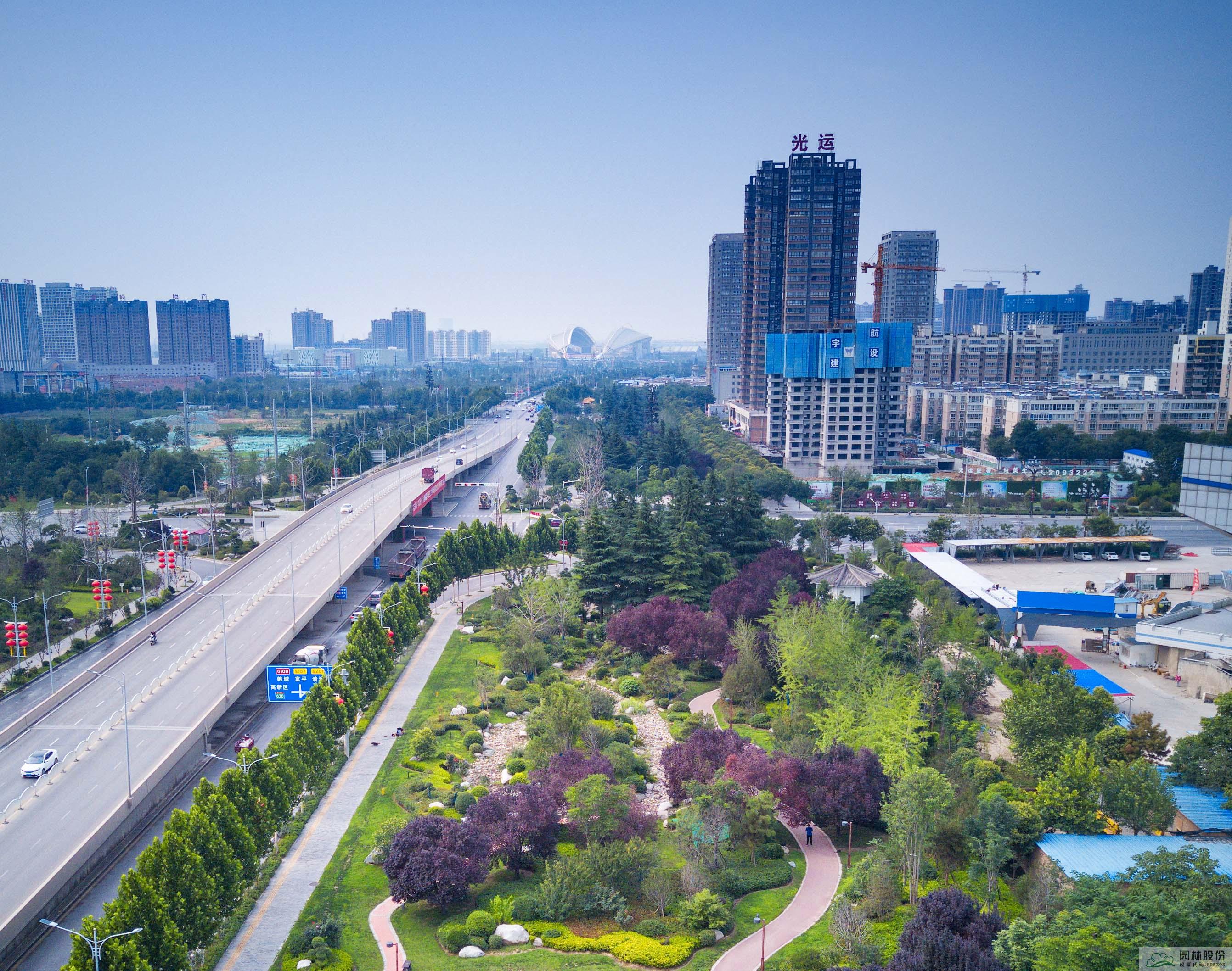 立體園林,師法自然。在另一個城市園林項目——渭南市中心城市道路綠化提升改造項目,南北向沿倉程路和渭清路的兩條城市綠廊成為打造重點,公司打破原有西北城市綠化景觀一成不變的陣列布局,在高鐵站對面的倉程路端頭,設計以造型油松為主的迎賓景觀,豐富植物組團層次,引進耐旱耐寒的常綠品種,滿足渭南市人民對城市景觀從園林變園藝的期待,打造煥然一新的城市風貌。