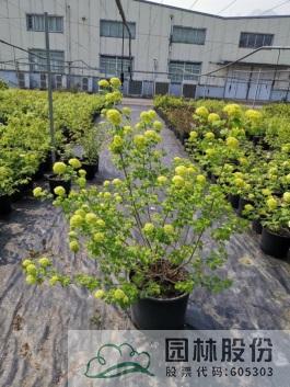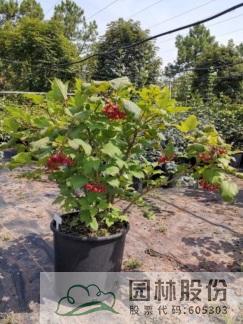 忍冬科莢蒾屬,落葉灌木,高可達4米。葉掌狀,通常三裂,秋季葉色轉紅,特別艷麗。聚傘花序白色,不孕花末期會呈現粉色,花徑較大,花藥呈黃色,花期4-5月。果實較大,形似櫻桃,紅艷誘人,給人以強烈視覺沖擊力,能形成園林觀賞的視覺焦點。觀果期長,可達4個月之久。適應性強,通常可自然成形。一年施肥3次,早春萌芽前,花后及秋季。適合工程應用與庭院觀賞。