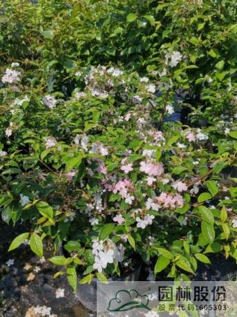 忍冬科莢蒾屬,落葉灌木,株高1.8-3m。植株直立性強,葉和花較其它蝶形花品種小,可孕花周圍圍繞一圈不孕花,花量大,花初開時花瓣邊緣即可呈現細膩的粉色,中間為嫩綠色,隨著時間推移花瓣變成深粉色。花期4月初到5月中旬,果實鮮紅色。適應性較強,病蟲害較少。冬季至早春可修剪。一年施肥3次,早春萌芽前,花后及秋季。為莢蒾屬中粉色系為數不多的品種之一,適合園藝盆栽或庭院觀賞。