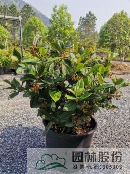忍冬科莢蒾屬,常綠灌木或小喬木,高可達5米,為日本--中國間斷分布種,屬瀕危植物。葉薄革質,亮綠具光澤,復聚傘序生于小枝頂,直徑可達20cm,花密集,白色,具香氣,一般于3-5月開放。果量大,果熟時由暗紅色轉為亮紅色,觀果期長,可一直延續到12月。適宜冬季至早春修剪。一年施肥3次,早春萌芽前,花后及秋季。該種抗性強,耐鹽堿,可用于庭院觀賞或鹽堿地綠化。