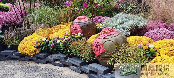 本次花境景觀中的主體雖是菊花,如球菊、蟹爪菊、乒乓菊、芙蓉菊等,但點綴其中的植物優良品種,使得整體花境更具獨特魅力。