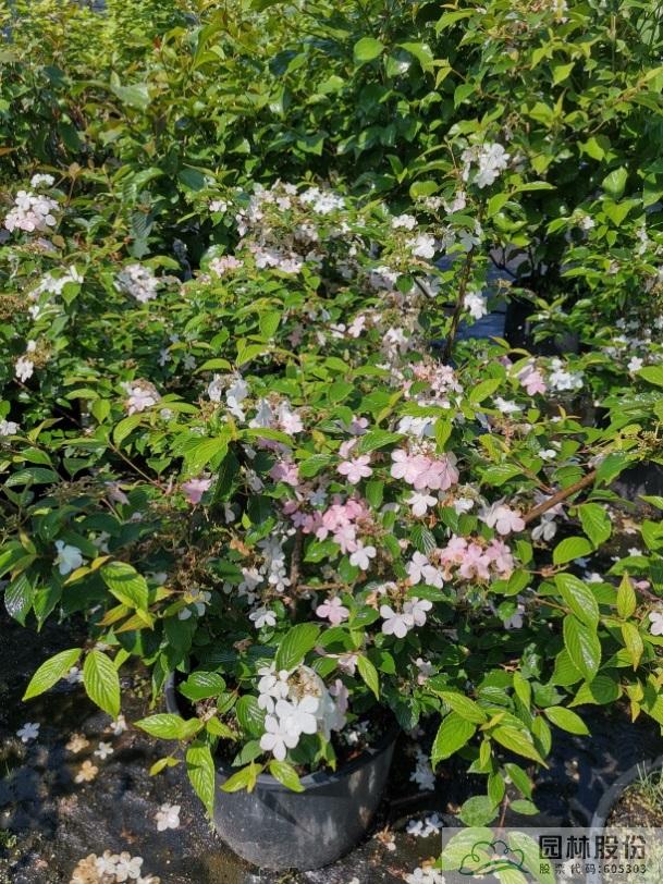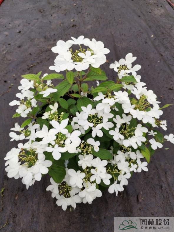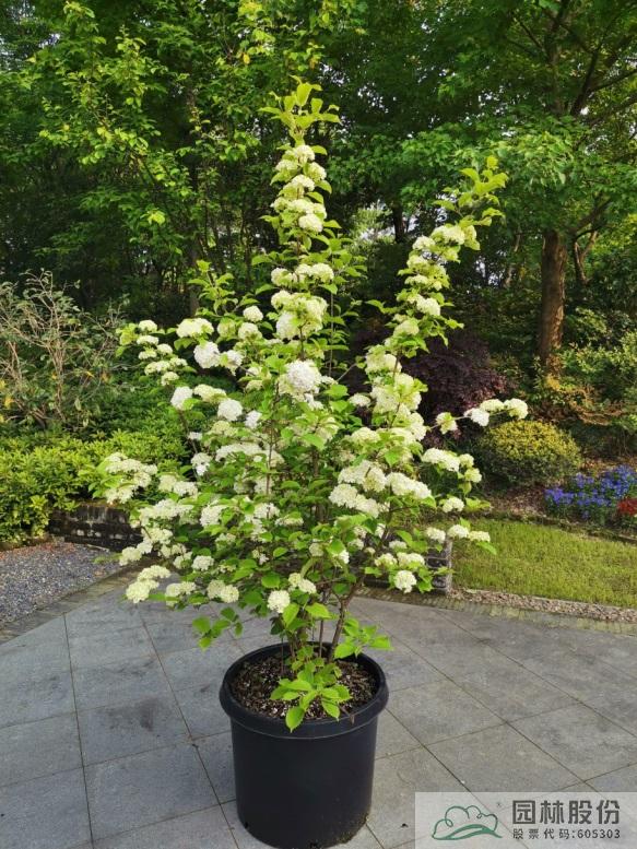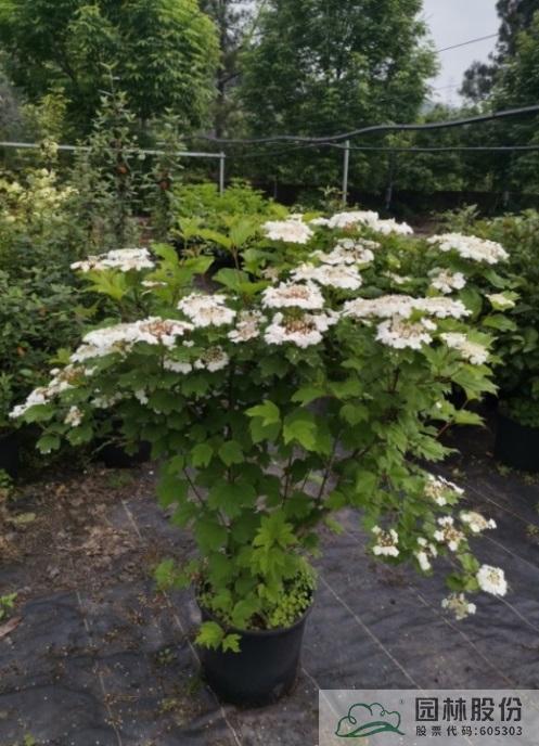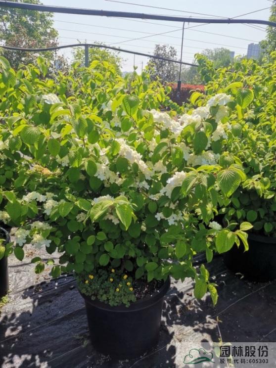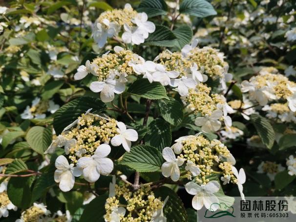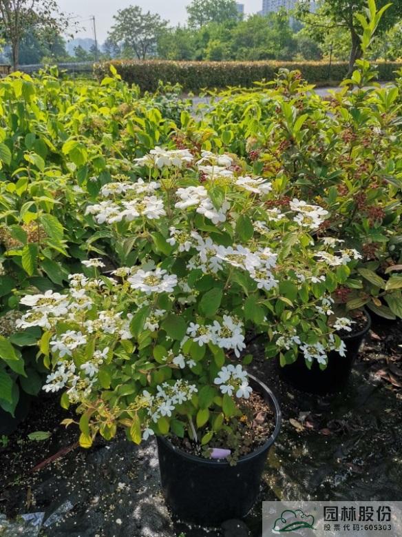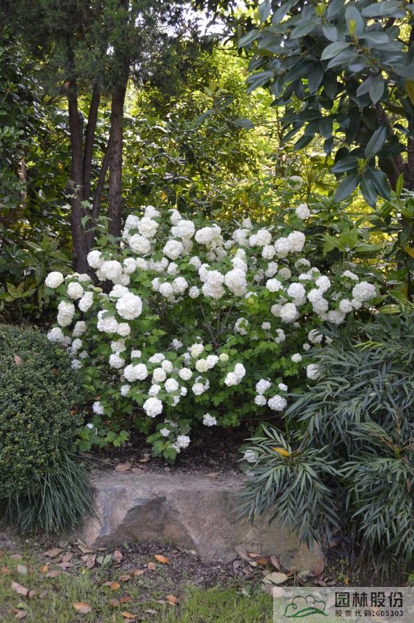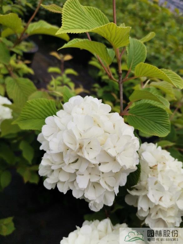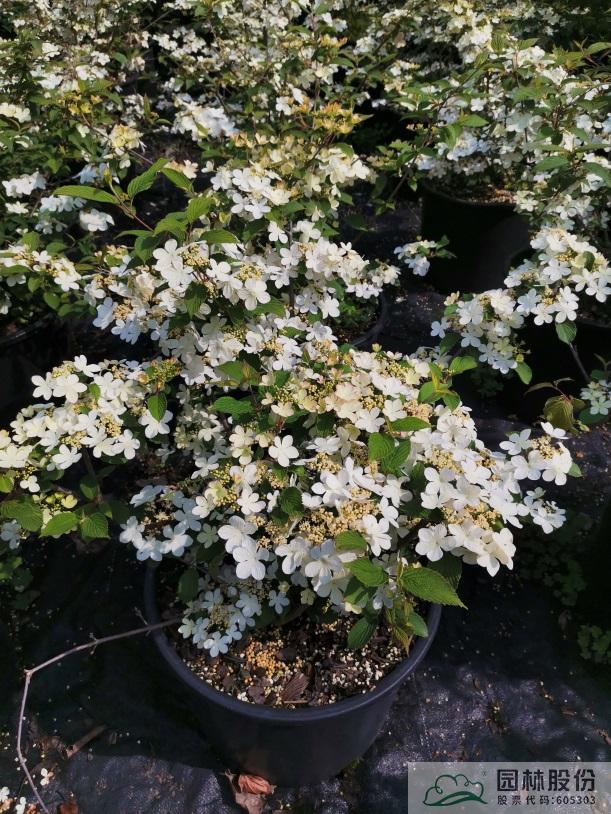 忍冬科莢蒾屬,落葉灌木,樹姿舒展。花序半球形,全為不孕花,開花時滿樹白花猶如積雪壓枝,高潔素雅,花謝后則綠葉如碧,無論花葉均具有較好的景觀效果。生長強健,喜歡散射光環境,適合工程應用或庭院觀賞。
