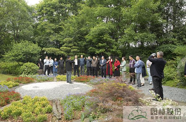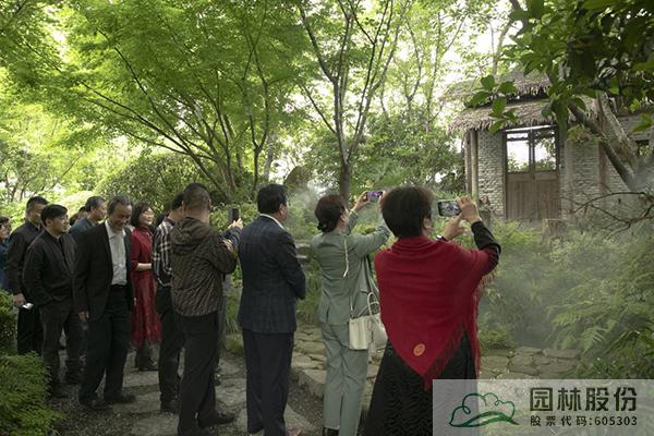 在李壽仁的帶領下,與會人員首先參觀了畫境·青山湖花園中心室外景觀展示區。五月的花園中心,綠意盎然,繁花綻放,鋪展開一幅生態自然、清新怡人的風景畫卷,引來大家的不斷贊嘆,紛紛直呼“太美了!”“太漂亮了!”