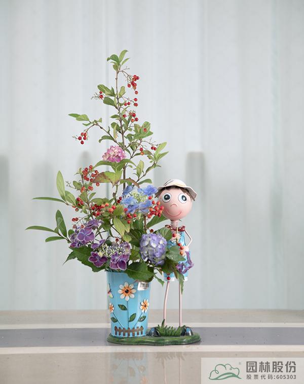 在風景如畫的畫境·青山湖花園中心,以園林股份自主培育的繡球為“主角”,老師們用靈動的雙手,無限的創意,制作出一幅幅新穎獨特的繡球花藝作品。所有花材均取自青山湖花園中心,不僅僅有“當家花旦”繡球,還有企業自主培育的黃金枸骨、金橡樹葉冬青、花菖蒲等多個待申請新產品。
