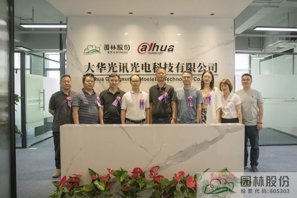 6月22日上午,由杭州市園林綠化股份有限公司(以下簡稱:園林股份(605303))與浙江大華技術股份有限公司(以下簡稱:大華股份(002236))共同出資的大華光訊光電科技有限公司(以下簡稱:大華光訊光電)在杭州舉行開業典禮。園林股份董事長吳光洪、副總裁兼董事會秘書王冰;大華股份戰略投資部總經理廖志榮、大華股份視訊事業部副總經理張國權;大華光訊光電總經理鄭新華等領導出席活動。
