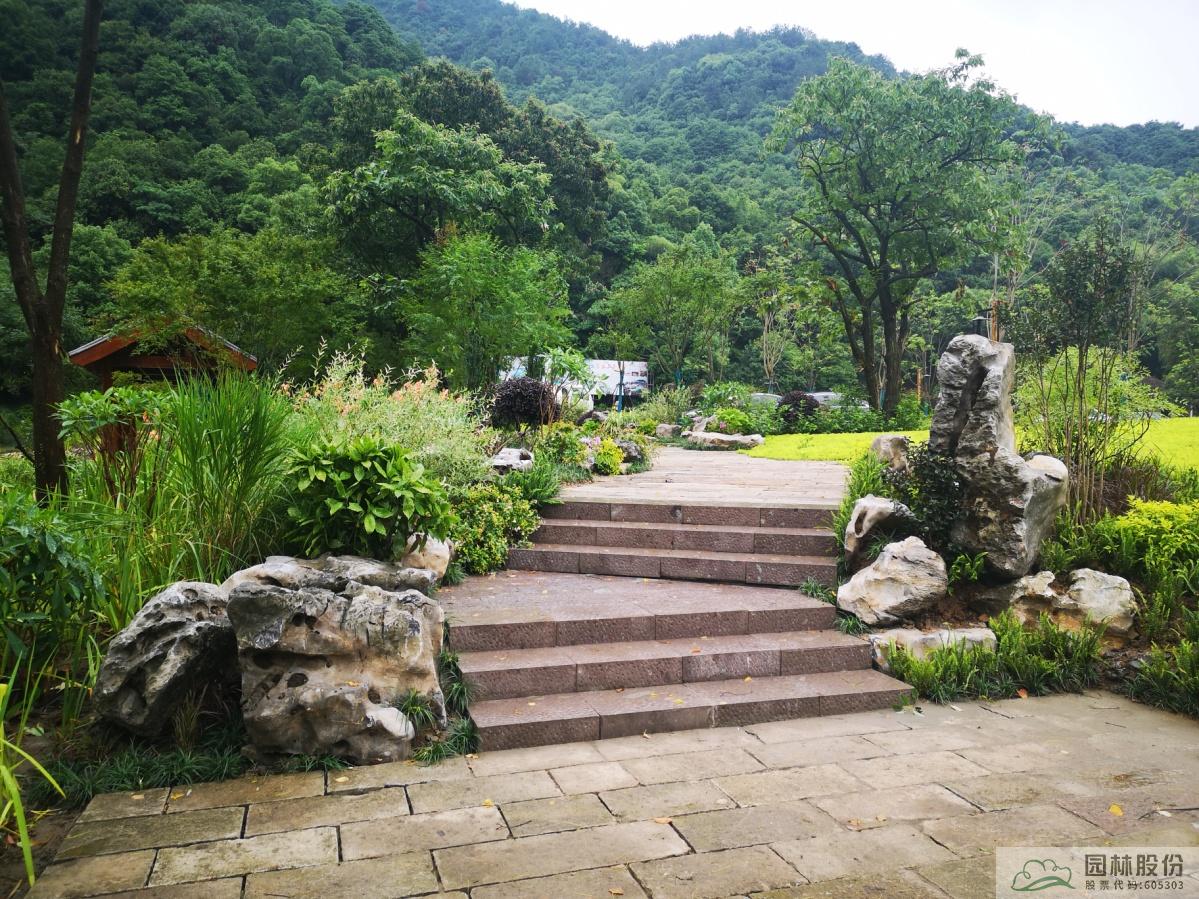 本次提升改造將黃公望紀念館前的白鶴潭到黃公望村交界處全面“打開”,入口處改建成了一個小型停車場,與之并列的是公園式入口小廣場(圖6),并增設入口景石,提升入口標識感。