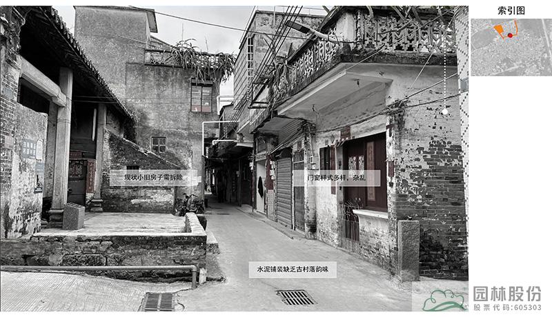 巷道改造現(xiàn)狀:現(xiàn)狀巷道為水泥路鋪裝,沿路缺少綠化,墻面磚砌樣式多樣,不統(tǒng)一,景觀(guān)效果不佳。